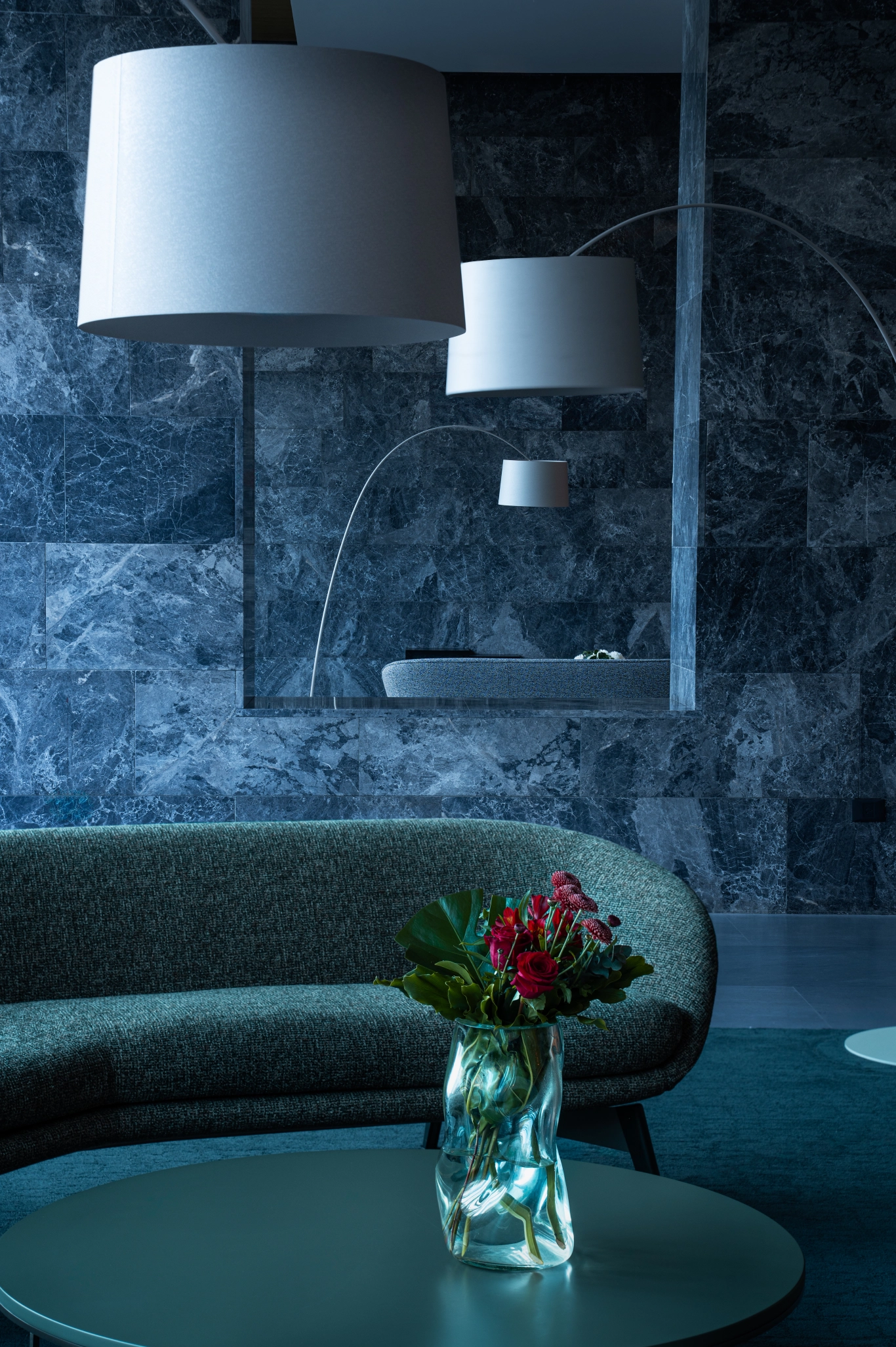 El proyecto combina terrazas, jardines privados y una morfología escalonada que dialoga con el entorno urbano. Materiales nobles como piedra, madera y metal refuerzan la identidad contemporánea y escultórica del edificio.